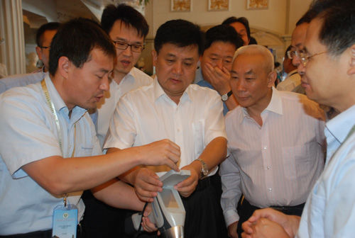 Skyray Chairman Dr. Richard Liu introducing handheld analyzer to Mr. Wu Xiaoqing, the deputy minister of Chinese Ministry of Environmental Protection